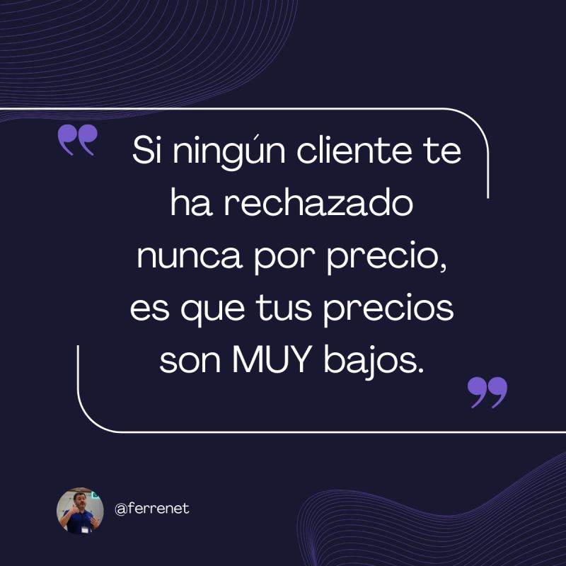 Y un último truco para saber si tus precios son bajos o están en línea con el mercado: si ningún cliente te ha rechazado nunca por precio, es que tus precios son MUY bajos. Súbelos hasta que un cliente te ponga pegas, y así siempre estás a tiempo de negociar.
