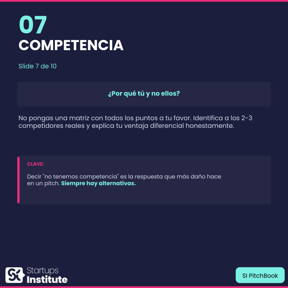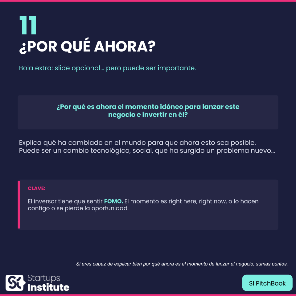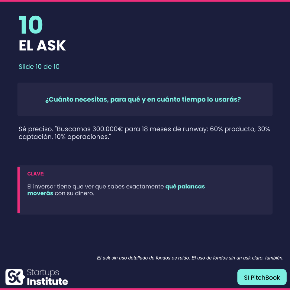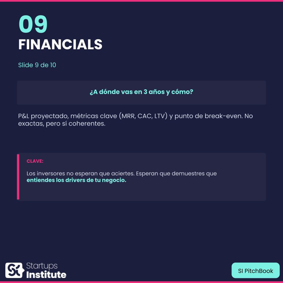 La misión del deck debe ser conseguirte una reunión, y es un modelo de presentación bastante estándar. Todo lo que se salga de los cánones habituales supone asumir riesgos innecesarios. Por eso en Startups Institute, después de revisar muchos modelos y de ver miles de decks hemos decidido hacer nuestro propio PitchBook condensando todo lo que sabe nuestro claustro sobre cómo construir el mejor pitch deck.