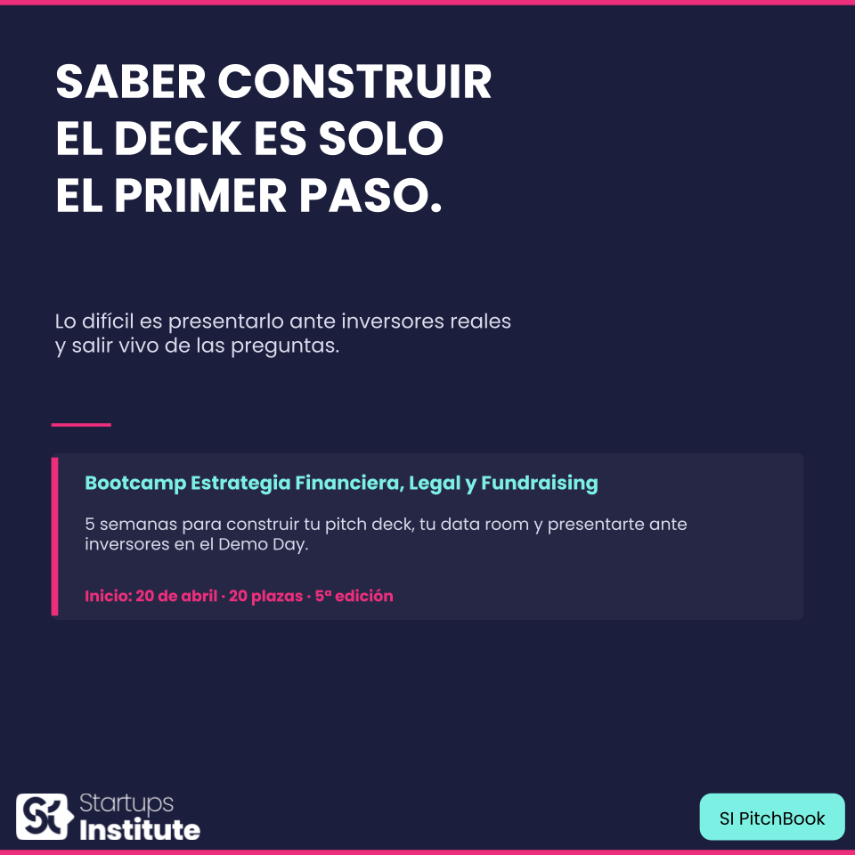 Y si quieres que te ayudemos a conseguir inversión, echa un ojo al Bootcamp de Estrategia Financiera, Legal y Fundraising.