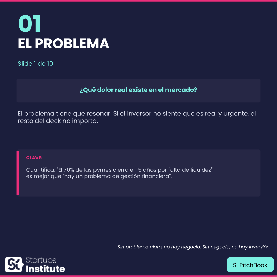 El PitchBook es una plantilla con explicaciones guiadas de cómo crear un deck que funciona. Así de fácil.